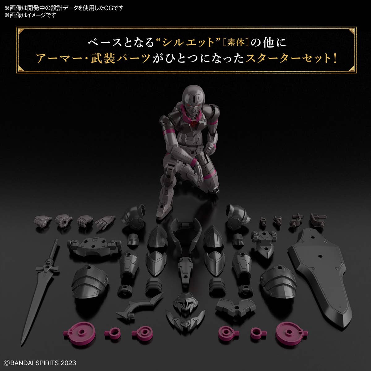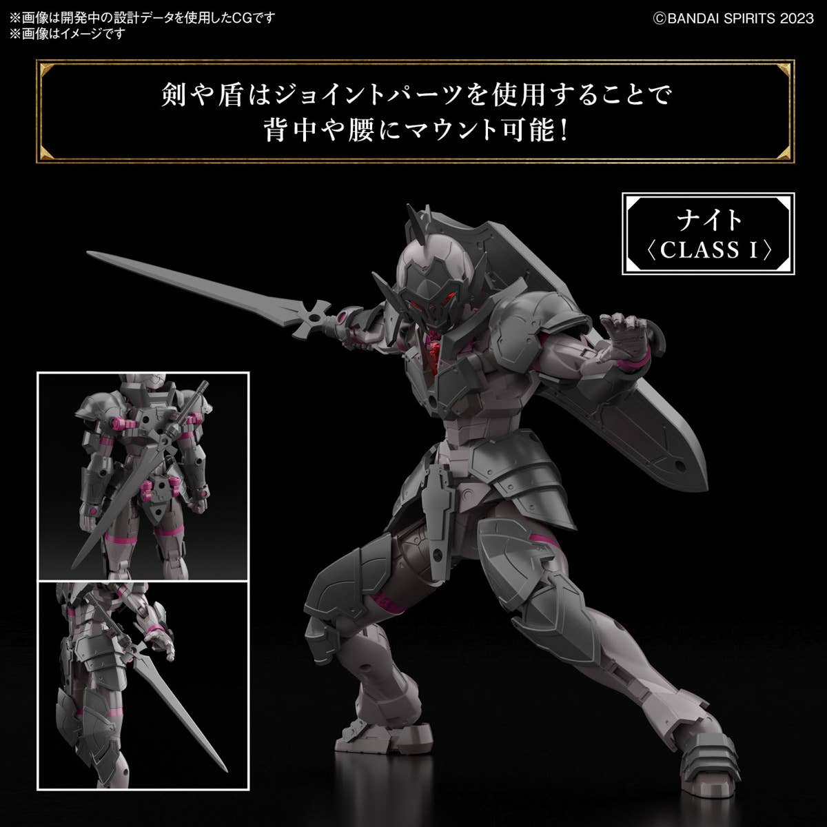 • Bandai's new figure-kit series, "30MF (30 Minutes Fantasy)," debuts with the Rozen Knight! This new lineup allows you to create your own fantasy-based figures and characters! The starter set includes armor and armed parts in addition to the base "silhouette" (elementary body). The "silhouette" is fully posable like a human body; movable axes are provided on the head and neck for natural flexibility. The new structure of the shoulder joint keeps the body line intact, even in bold poses. The movable parts of the chest, torso, and waist work together with the sliding mechanism at the base of the waist joint to create natural poses. Armor and armed parts are included to combine with the "silhouette" to create the Rozen Knight! A new mechanism for attaching shoulder and waist armor via joints on the back allows for flexible movement; swords and shields can also be mounted on the back or waist with joint parts. Order him for your own collection today!